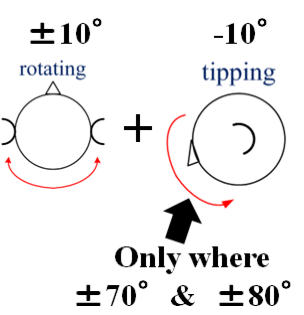Figure 2.2: Active audition of SIG2: For the surrounding sound, ambiguity of front and back is removed by moving the neck right, left and down.